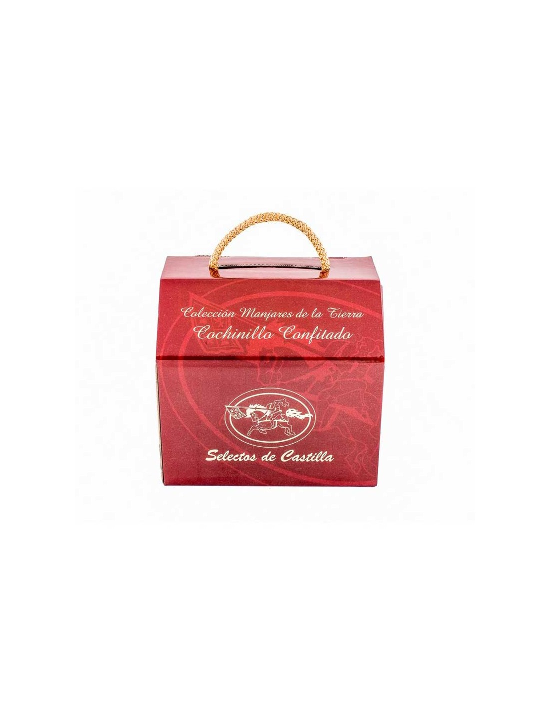 PRODUCTO ESTERILIZADO: Preparación: Calentar la lata abierta al baño maría una 1/2 hora, hasta que la grasa este fundida. A su vez calentar el horno. En una fuente para horno, colocar la pieza de cochinillo con la piel hacia arriba, añadiendo la salsa de cocción que se encuentra en el fondo de la lata(bajo la grasa). Dorar a horno fuerte unos 15-20 minutos, hasta que la piel esté tostada por completo. Servir con unas patatas panaderas rehogadas en la propia grasa del confit. Para 4-6 personas.