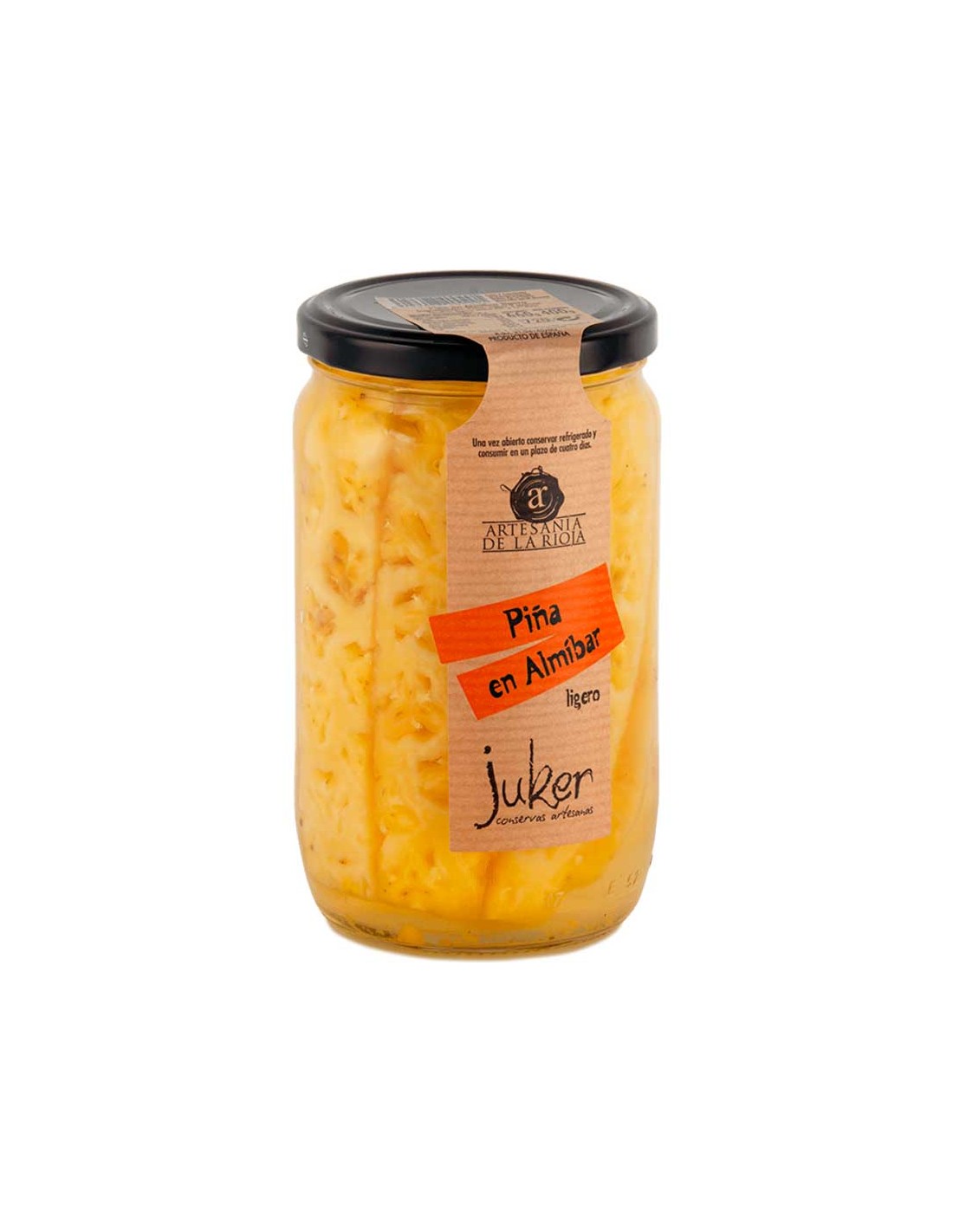 Ingredientes: piña, agua y azúcar. Almíbar ligero entre 14º y 17º Brix.Envase: frasco cristal 720mlPeso neto: 660g